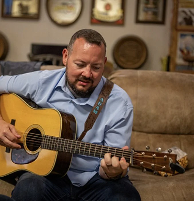 From a young age Adam showed an interest in music of all kinds, but at 14 years old he fell in love with Bluegrass music! At 16 he and two friends from school got a job playing music at a local amusement park. Two years later Adam was hired to go on the road playing guitar and singing tenor for Dry Branch Fire Squad where he stayed for a three-year stint.